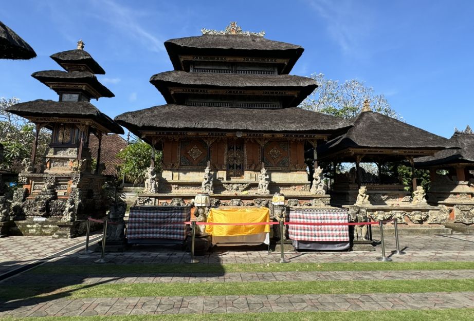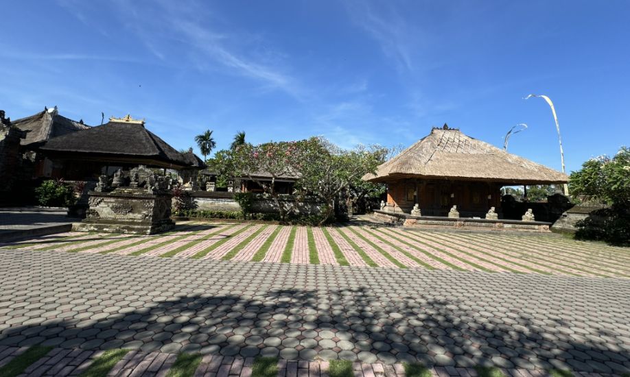 At the far end of the inner courtyard this is how Balinese temples prepare sacred spaces for offerings, ceremonies, or daily rituals.