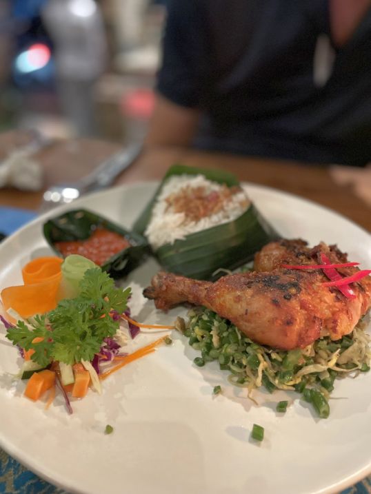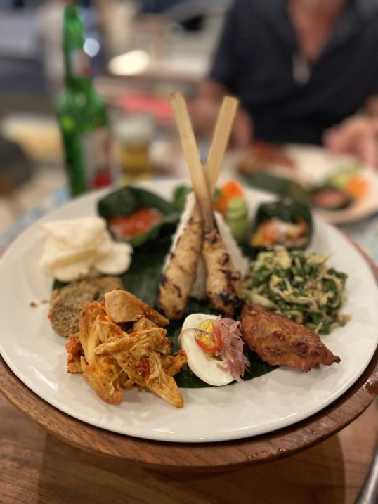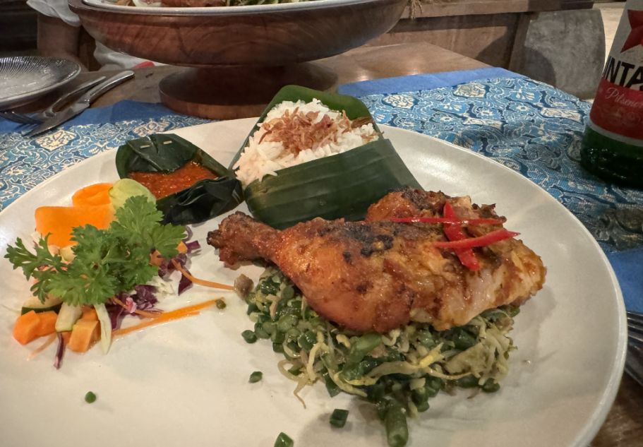 I ordered a plate of nasi campur, always a great choice with its colorful mix of small dishes, rice, vegetables, and meats, and the chicken dish that added something warm and comforting to the meal. It was the perfect way to unwind, simple, good food in a chill atmosphere right in the heart of Ubud.