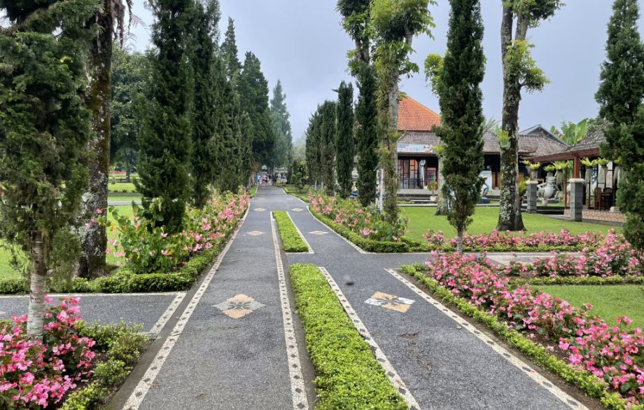 The garden path at Ulun Danu Beratan becomes almost whimsical as you move farther from the lakeside shrines, and the landscaping turns into a vibrant, colorful park filled with flowers.