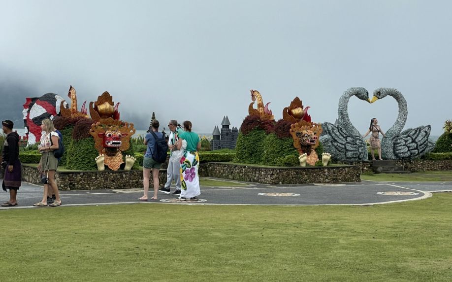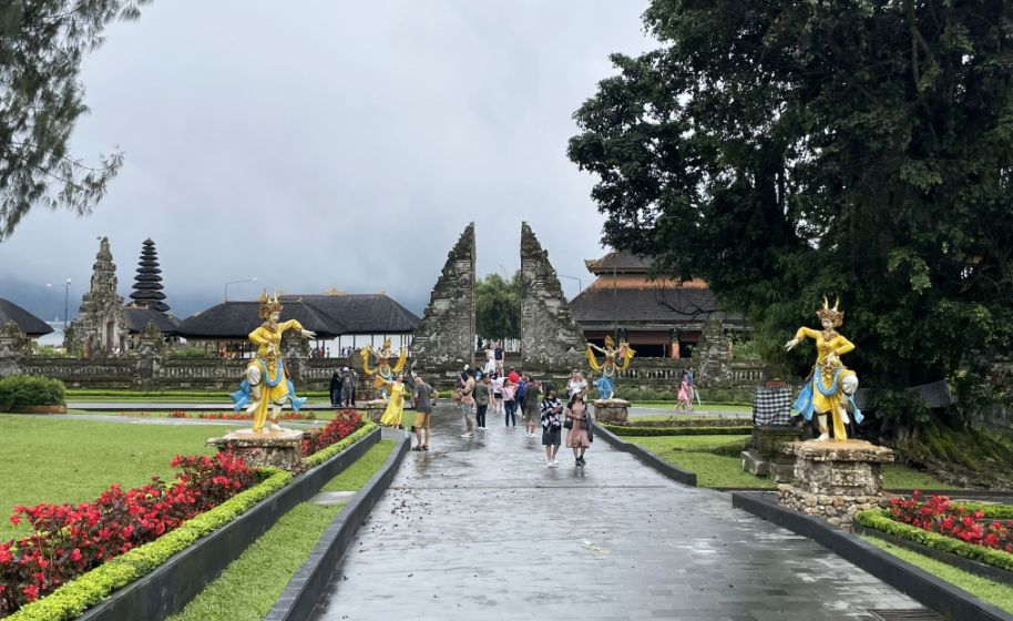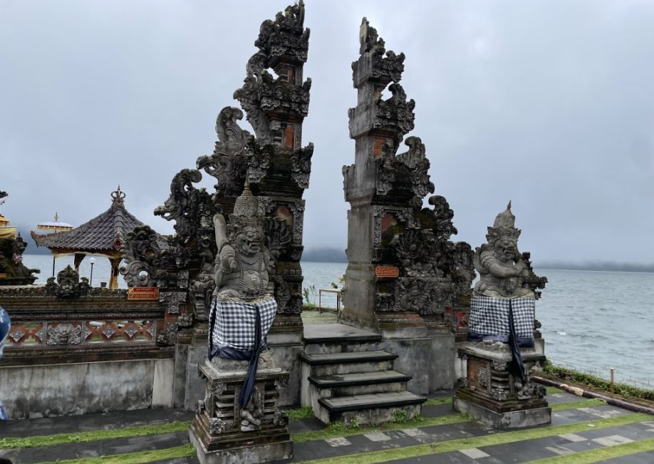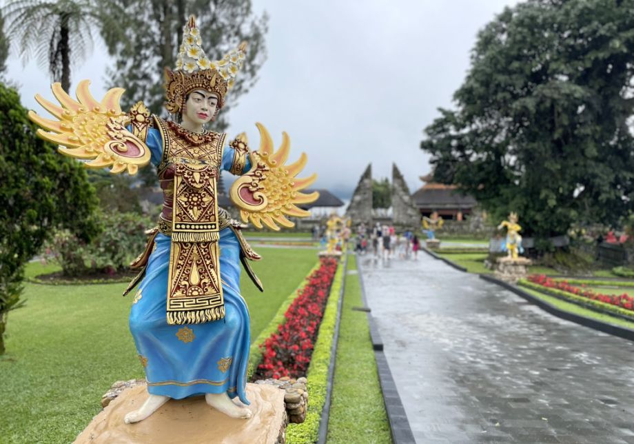 Walking into Pura Ulun Danu Beratan feels like entering a resort, and the first thing that catches your eye is the row of colorful statues lining the walkway. Their bright colors create a joyful welcome.