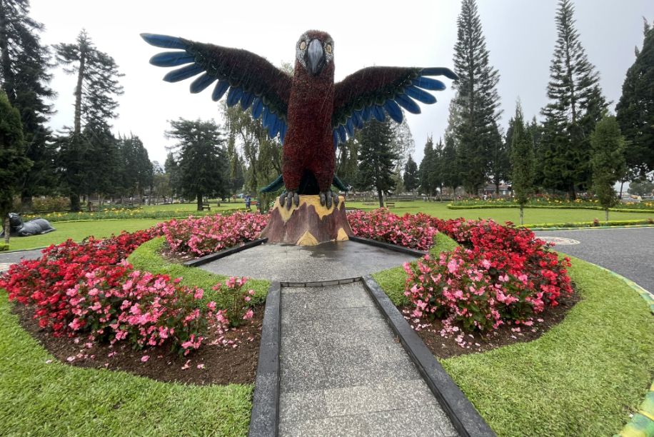 A little further ahead, we came across one of the park’s most striking sculptures of a massive parrot statue with its wings fully spread.