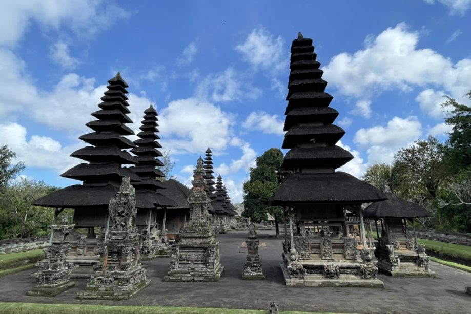 Seeing many 11-tier merus together indicates that this area is a major ceremonial zone, a sacred place where offerings are made during big festivals.