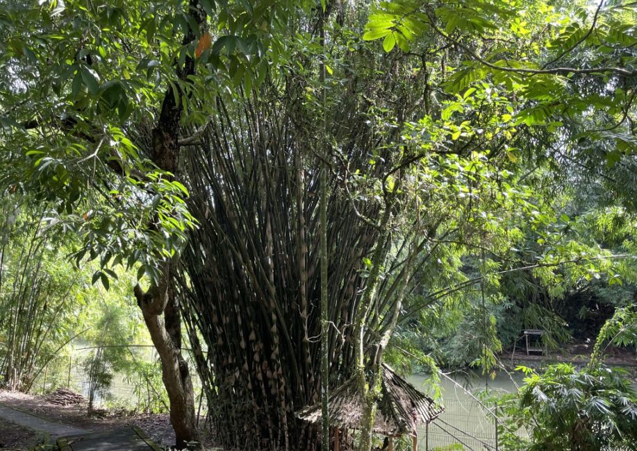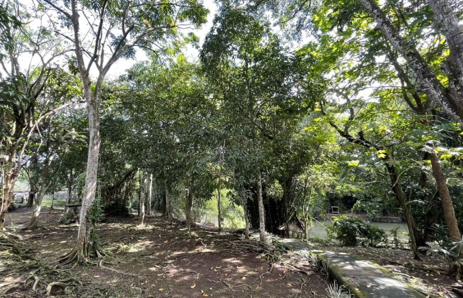 This area is shaded and cool, with tall trees. You can see Hoa and our tour guide wearing a green sarong.
