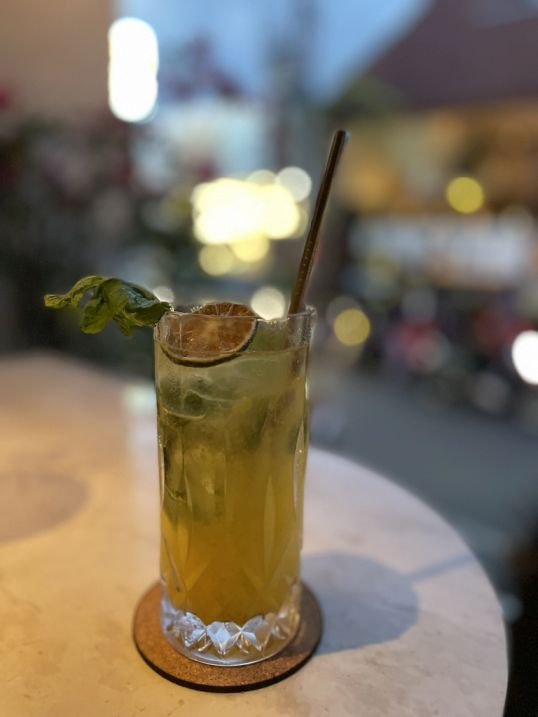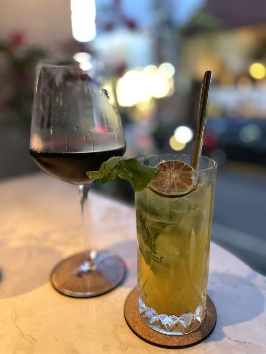 We started the evening with a passion fruit cocktail for me and wine for Hoa.