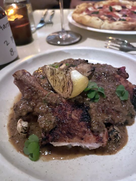 Before our orders even arrived, the restaurant surprised us with an amuse-bouche of crostini topped with a smooth rich liver pate mousse.
