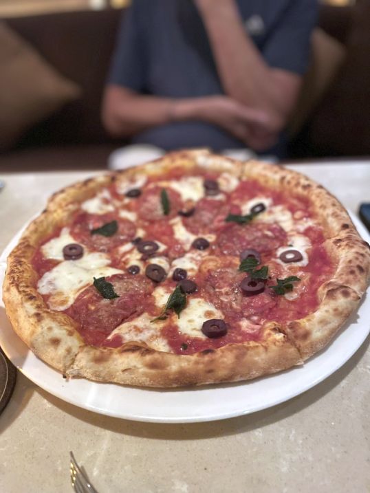 We shared a Pepperoni, mozzarella, and olives pizza. A simple combination but full of flavor. The crust was crispy, just the way I like it.