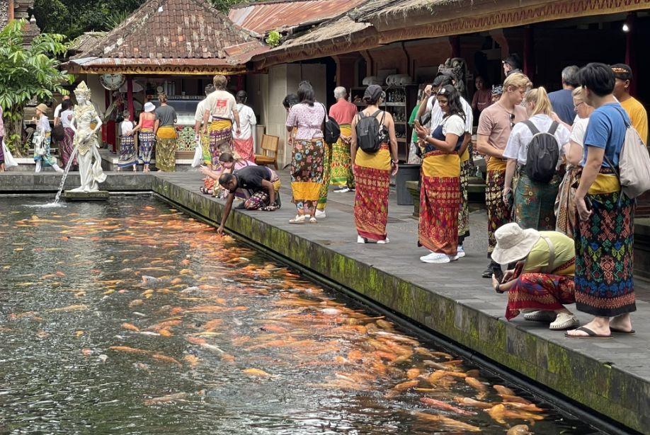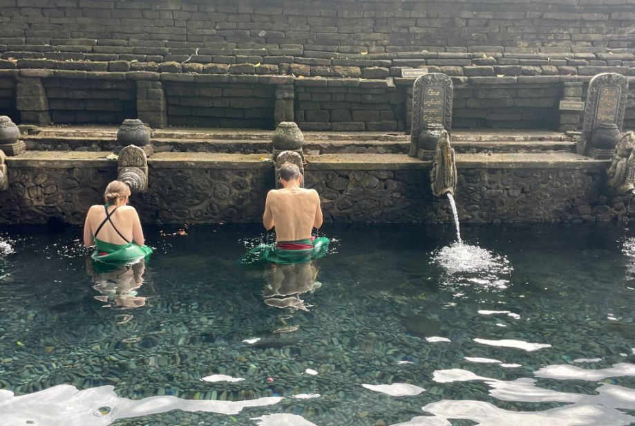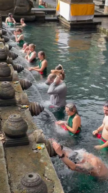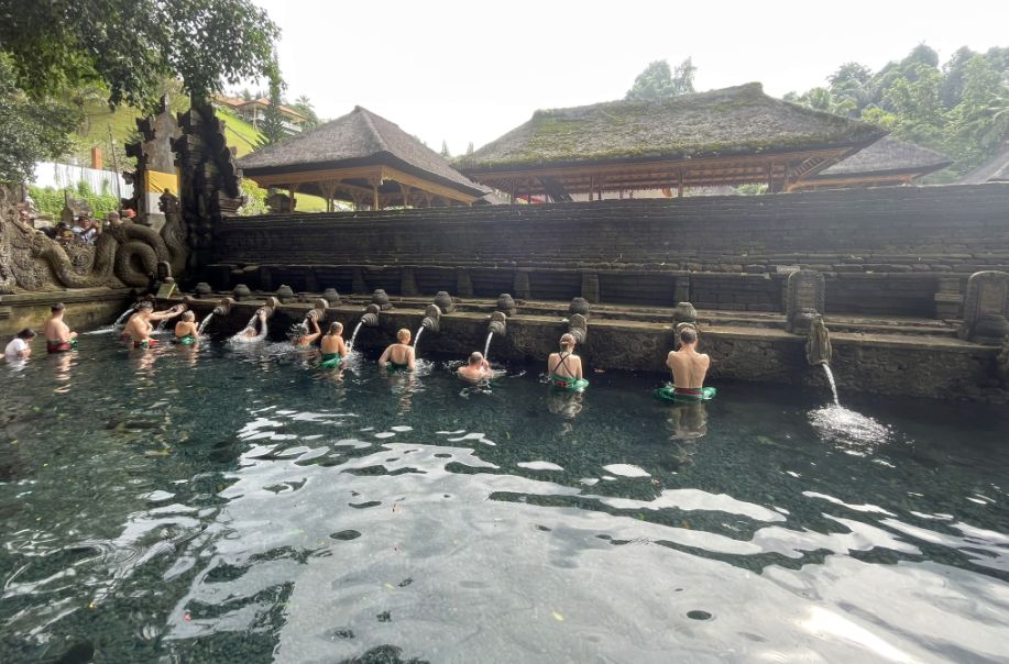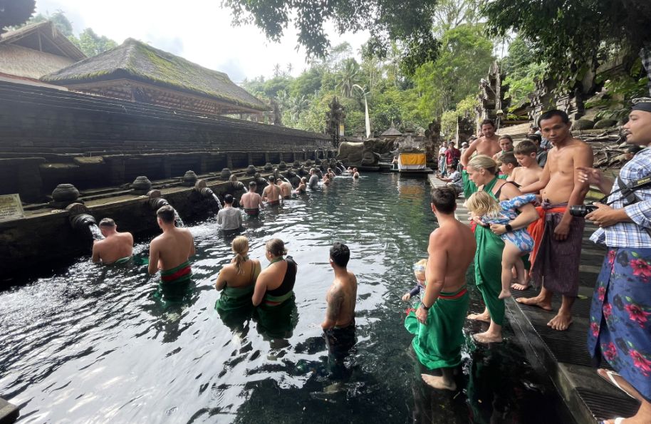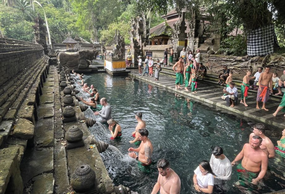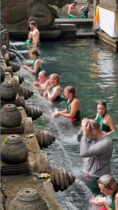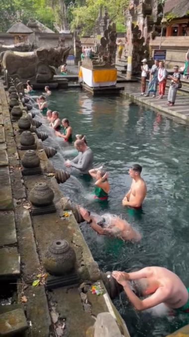It’s extremely common to see Westerners in this pool because the ritual is open to anyone, many tourists want a spiritual experience rather than just sightseeing, and the mix of locals and foreigners symbolizes how Balinese spirituality is inclusive and welcoming.