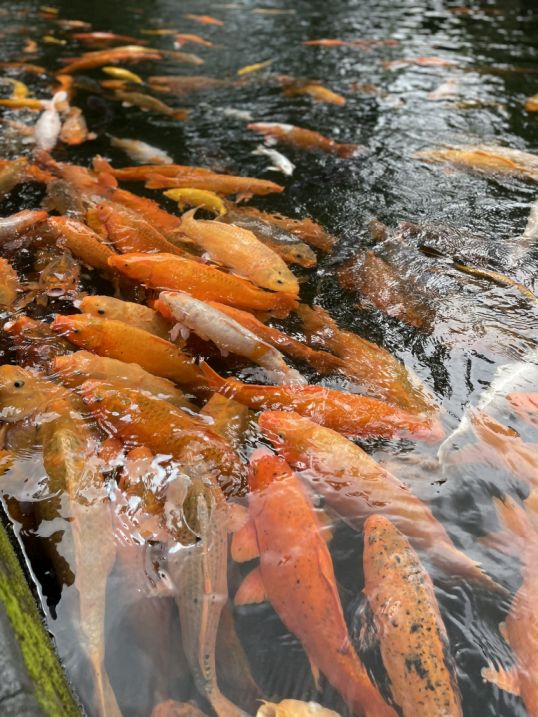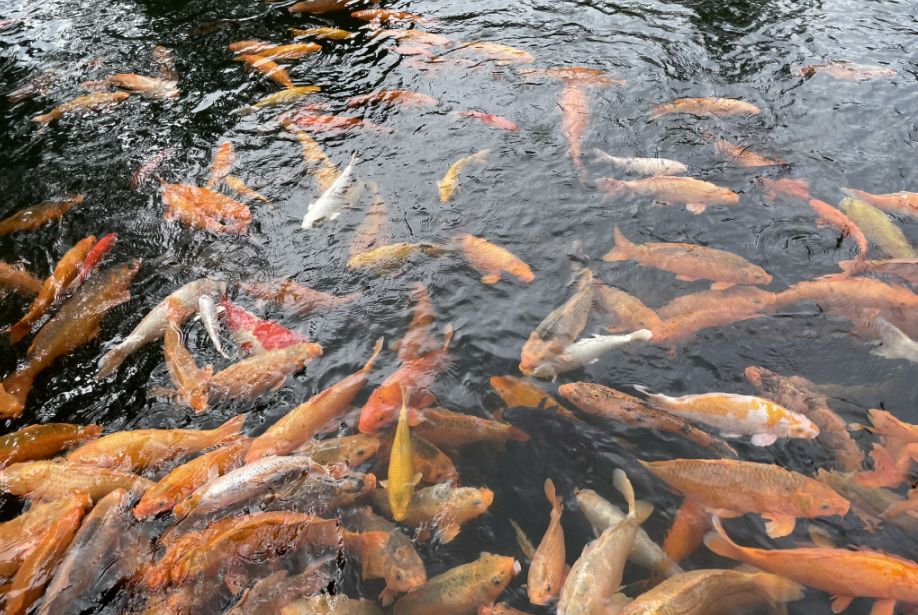 Koi are naturally very docile fish, and the serene, clean spring water helps keep them calm and healthy.