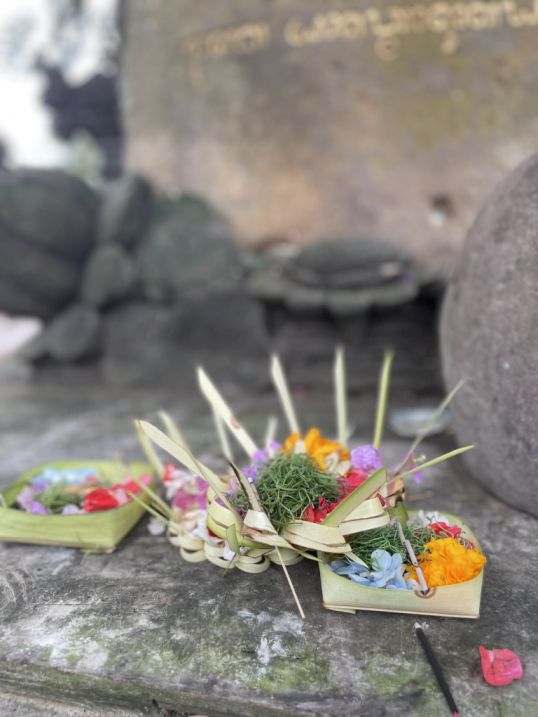These small, colorful arrangements are called canang sari. They are daily offerings made by Balinese Hindus to thank the gods for peace and prosperity. You see them everywhere in Bali, but especially at temples.