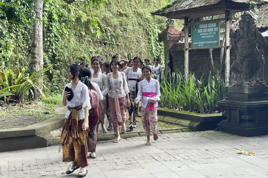 A groups of girls or young women dressed in traditional Balinese temple attire. It adds such a special, living-cultural feeling to the temple.