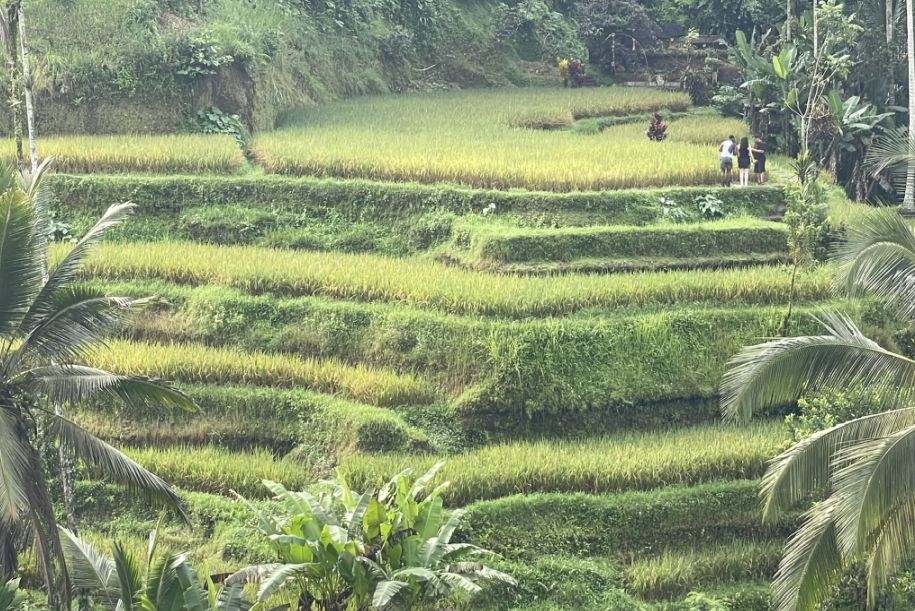 Instead of the buzz of people lining up for swings and photo props, we were suddenly surrounded by the softer, more grounded side of Tegalalang: narrow dirt paths winding between the terraces, and the rustling of rice stalks swaying in the breeze.