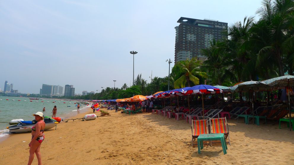 Lots of umbrellas for rent on Pattaya Beach! You can rent a seat for just a few bucks and have a wonderful day swimming and enjoying the sun!