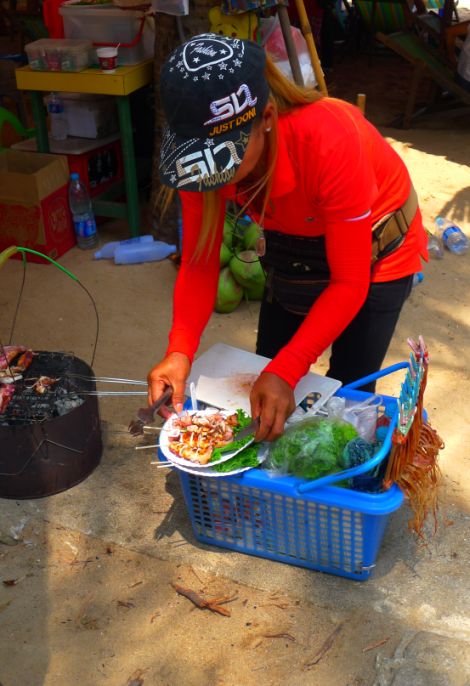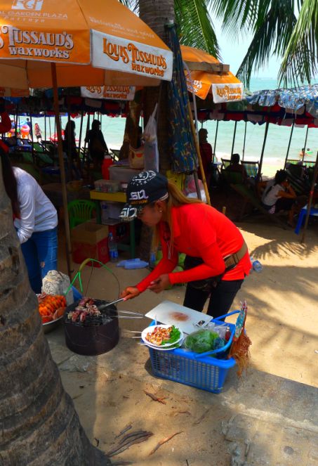 You will see a lot of people selling fresh grill squid on the beach! The aroma is quite exquisite!