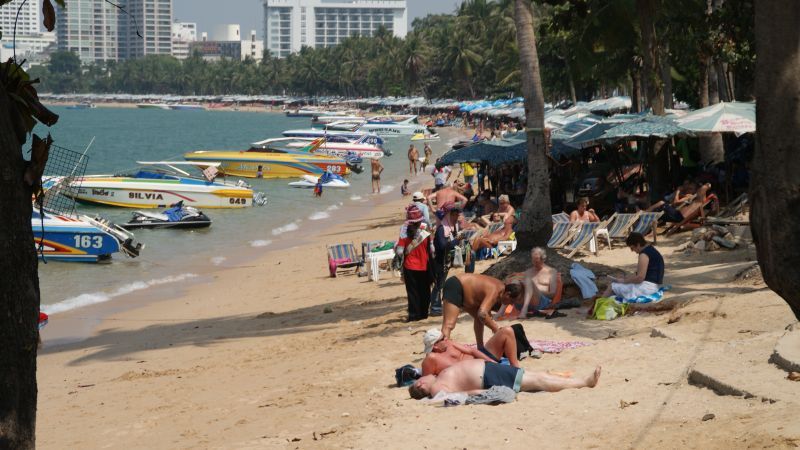 The beach is pretty long stretching to over a mile. Here you can rent a chair for just a few US dollars and relax for as long as you'd like. The Thai people working here are extremely friendly and will always greet you with a smile. Often you'll hear "jet ski, jet ski".