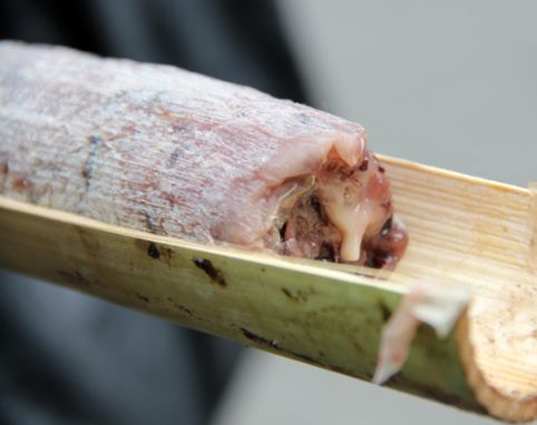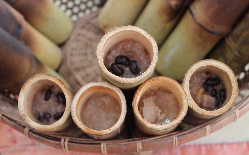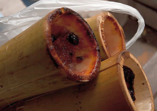 Khao lam is a fairly common street food in Thailand. It's a piece of bamboo stuffed with sticky rice, coconut, and sometimes black beans, then grilled.