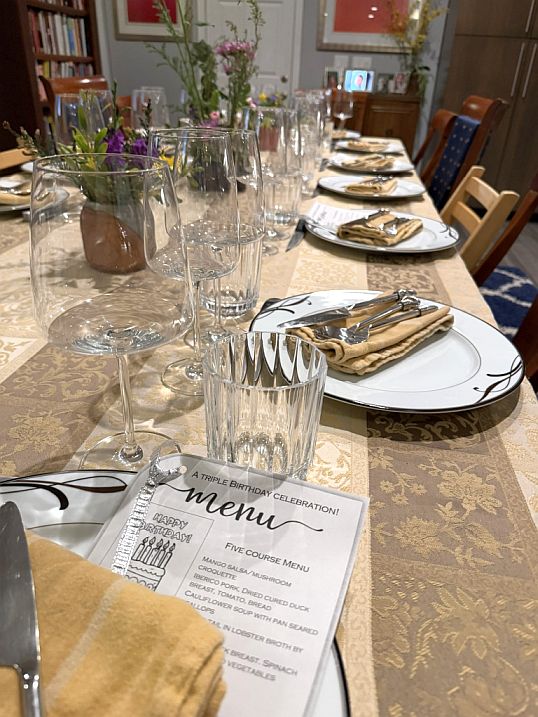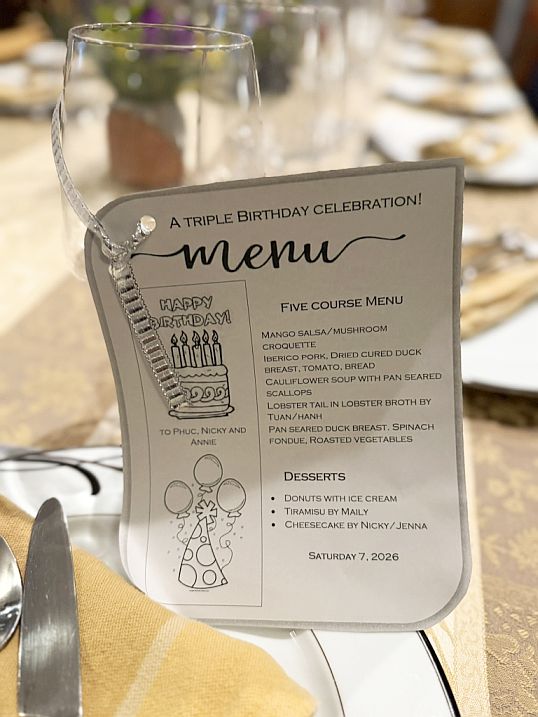 Tonight is truly special evening, a joyous triple celebration of birthdays for Phu, Nicky, and myself!