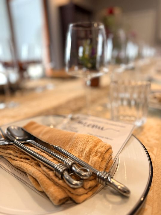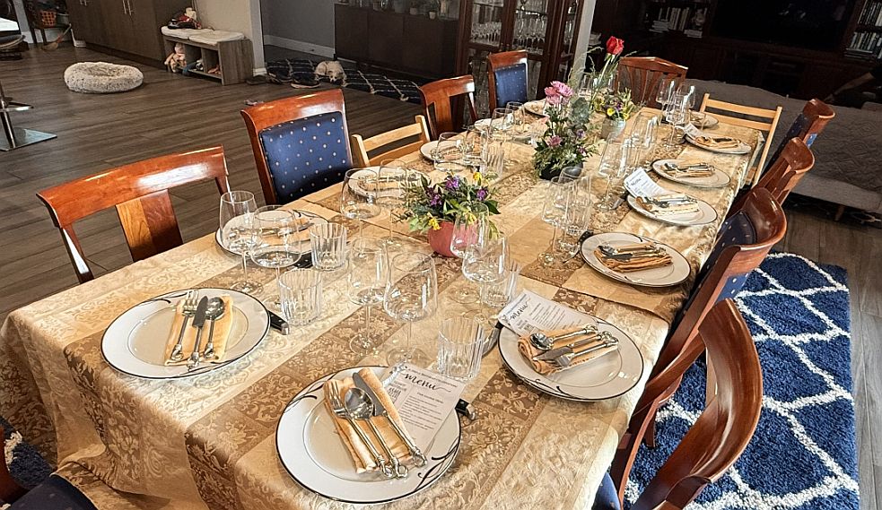We are embarking on a culinary journey, a magnificent five-course dinner that is not only a feast for the senses but also a testament to friendship and shared passion. This evening's exquisite menu is the result of a splendid collaboration, where I have woven together the incredible contributions of our friends to create a harmonious and delightful meal. Every detail has been thoughtfully prepared to create an unforgettable experience.