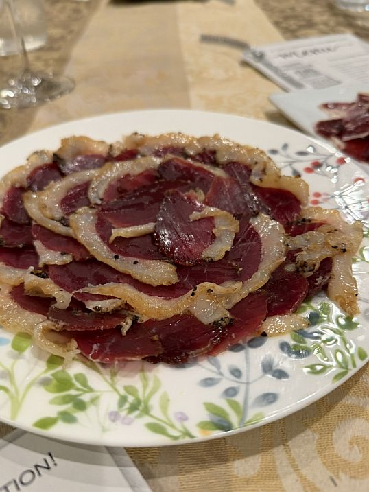 Course 2-The intend of this course is to transports us to the heart of Spain with a selection of exquisite cured meats. The delicate, nutty richness of thinly sliced Iberico pork Jamon, a true Spanish delicacy, and alongside a dried cured duck breast, offering a subtly gamey flavor.