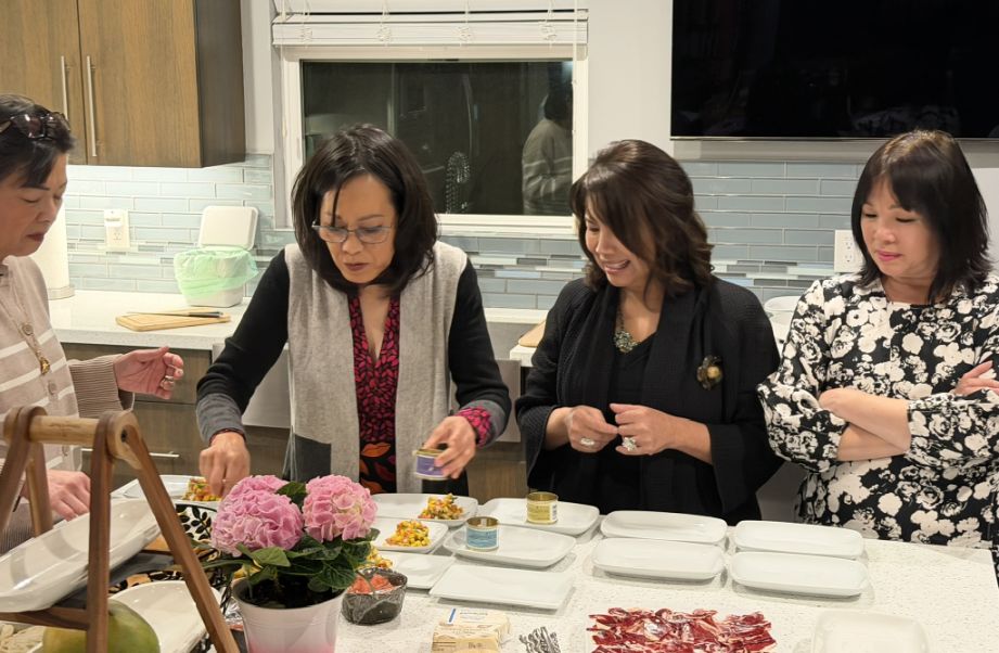 I am now platting the first course while chatting with Ha, Huyen, and Maily.