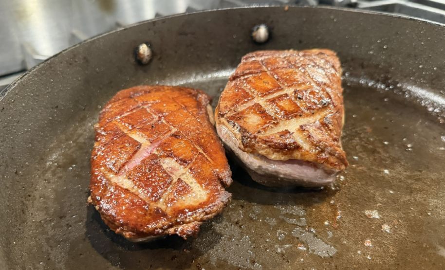 I am now cooking the duck breast at medium/low heat so that the fat is rendered properly and the skin is crispy.