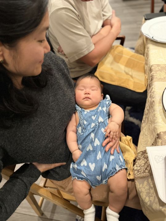 All of us celebrating the special occasion. It is also the first time that Kevin and Kristie are bringing Hazel for everyone to meet her.