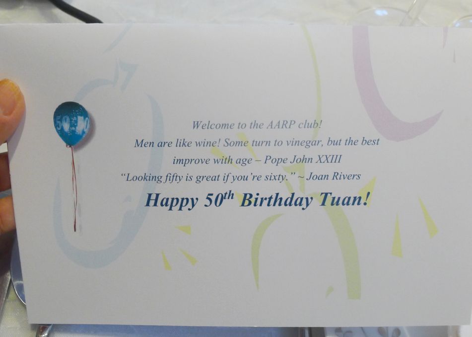 Tonight I am throwing a surprise Dinner party for Tuan's 50th birthday. The essence of the is party is the surprise element so how I am going to surprise him? It is not an easy task since Tuan definitely expected some type of celebration for reaching a big milestone. Of course on his actual birthday date (Thursday) Hanh arranged for a fancy dinner with the boys in San Francisco. She also put together a list of things for them to do and see during their 2 days in Francisco. By the time Saturday rolls over, the celebration was ending and they were suppose to drive home after lunch. I worked out all the details with Hanh and my job was to call mid day and pretended I was not aware of Tuan's birthday and simply asked them to come over for an impromptu dinner.