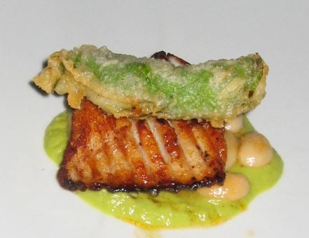 Mediterranean Rouget with Prawn & Basil Fitter, Marquita Farms Baby leeks, Italian Butterbeans. |