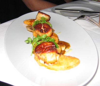 Day boat Sea Scallops with crispy Fingerling Potatoes, Wine cap Mushrooms .
