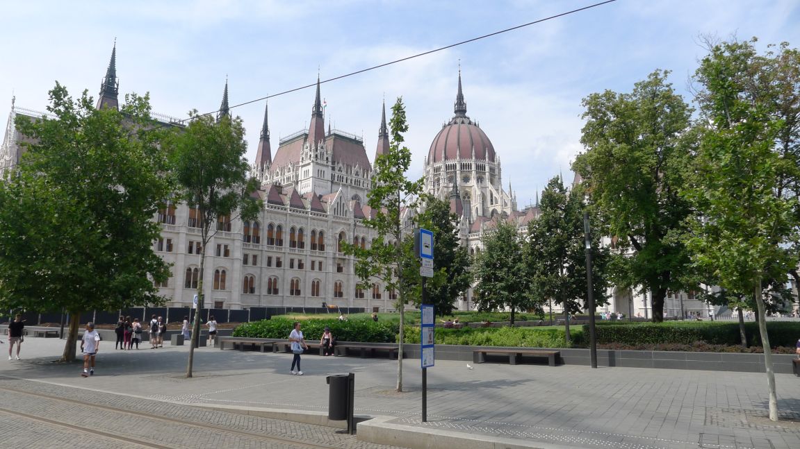 Located in the Kossuth Lajos Square in the Pest side of the city, on the eastern bank of the Danube.