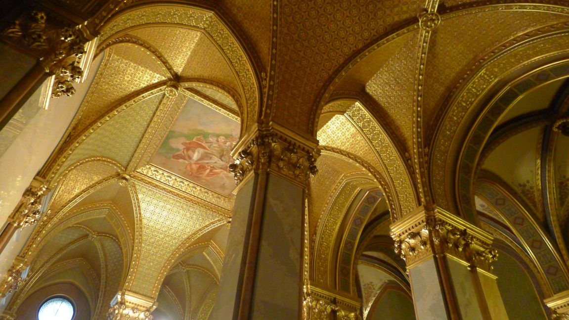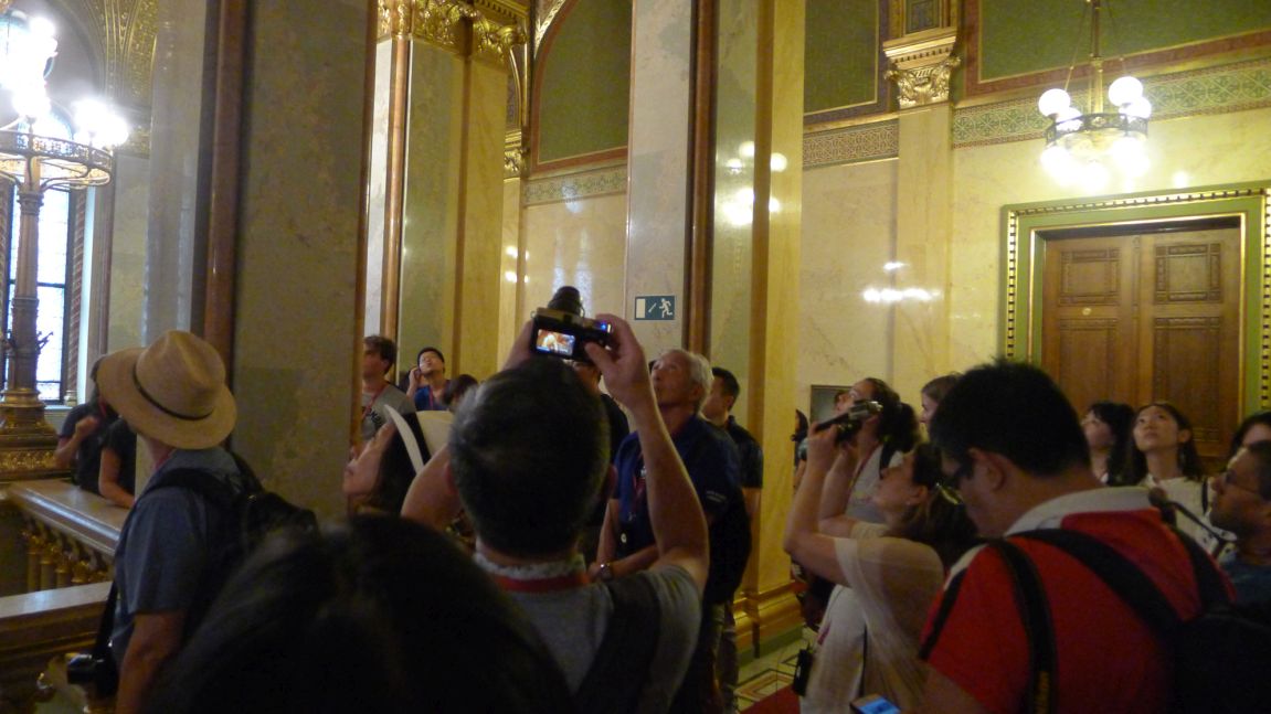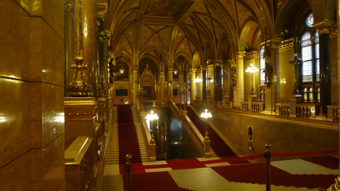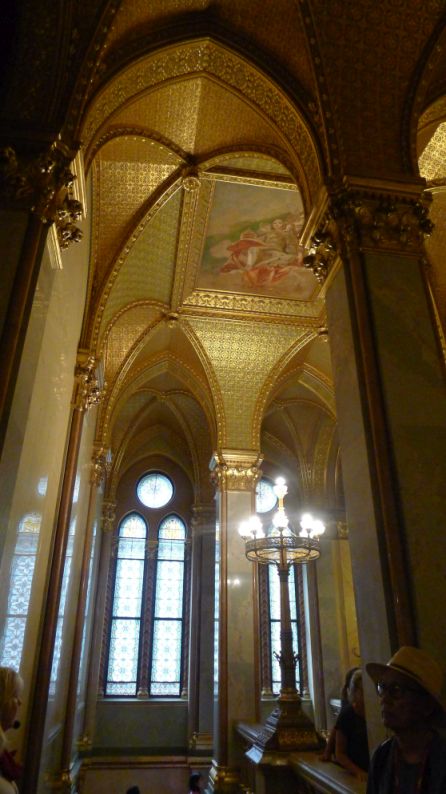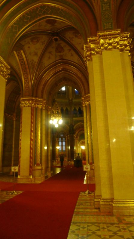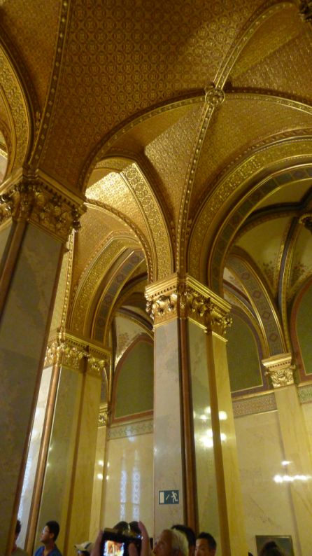 We are now entering the Parliament. The first thing you see is gold everywhere and an ornate tall ceiling.