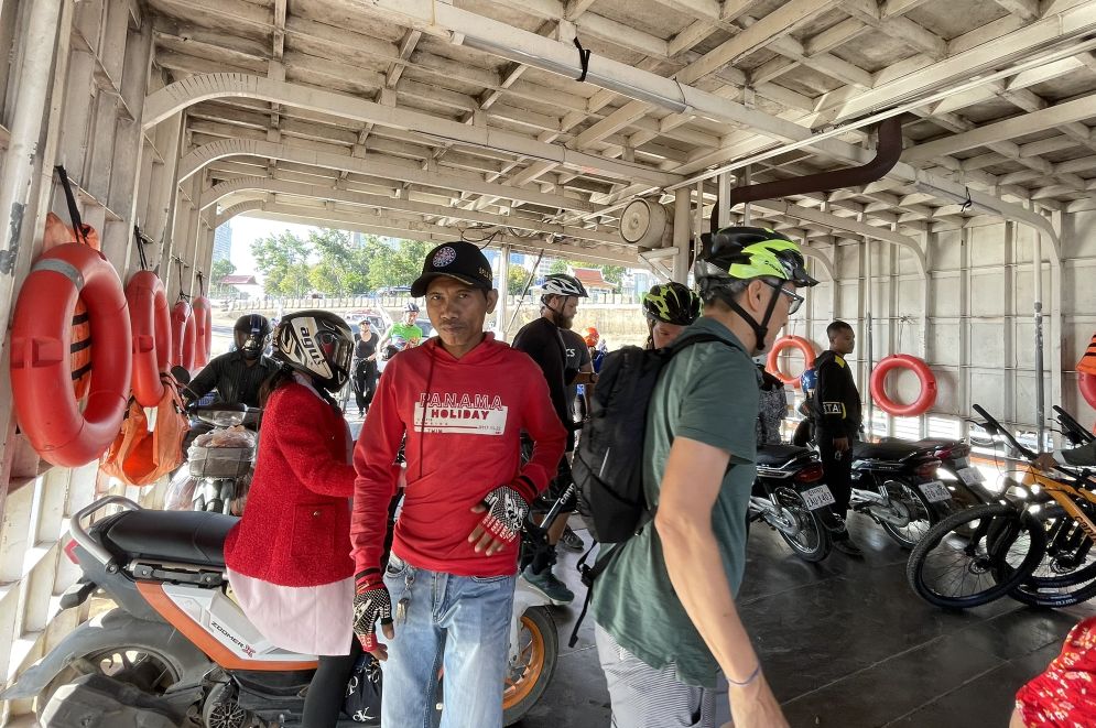 First stop: we are taking the ferry to cross the Mekong.