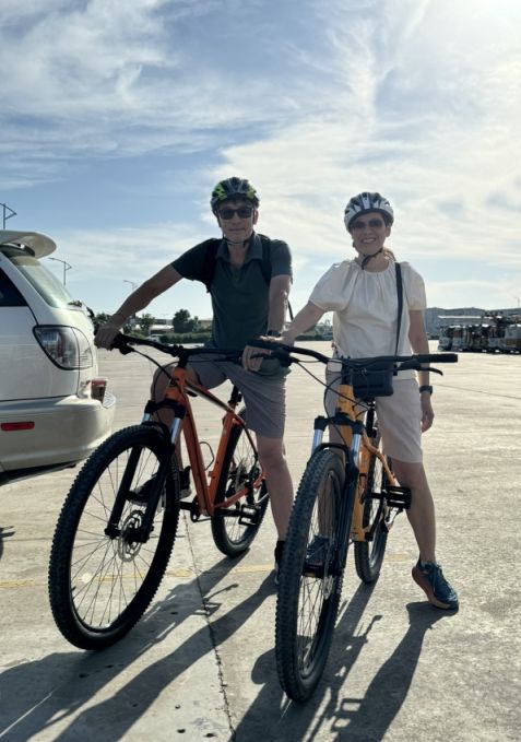 We met up with the group at 7:30AM in the parking lot of the Post Office. Our tour guide assigned each of us a bike and we are trying it out. There are only 5 people taking the tour today.