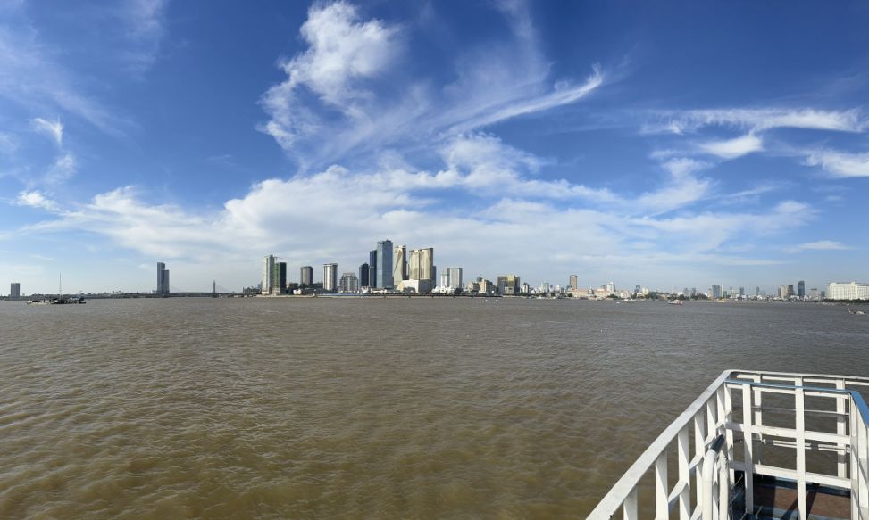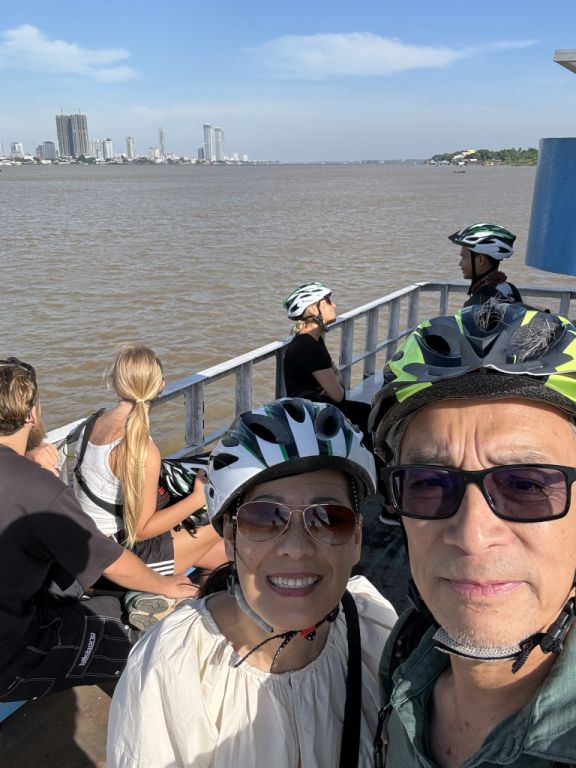Here is the view of our ferry docking on the bank of the Mekong with Phnom Penh in the back ground.