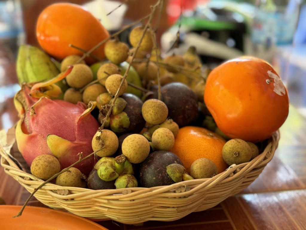 As soon as we arrived a beautiful basket of exotic fruits are set up for us.