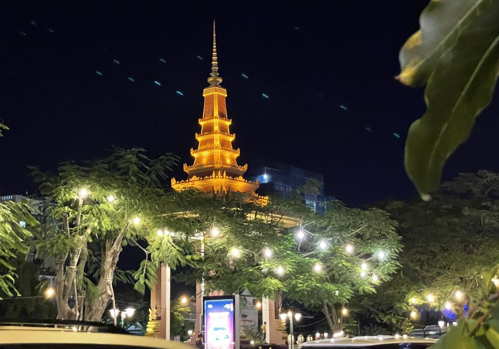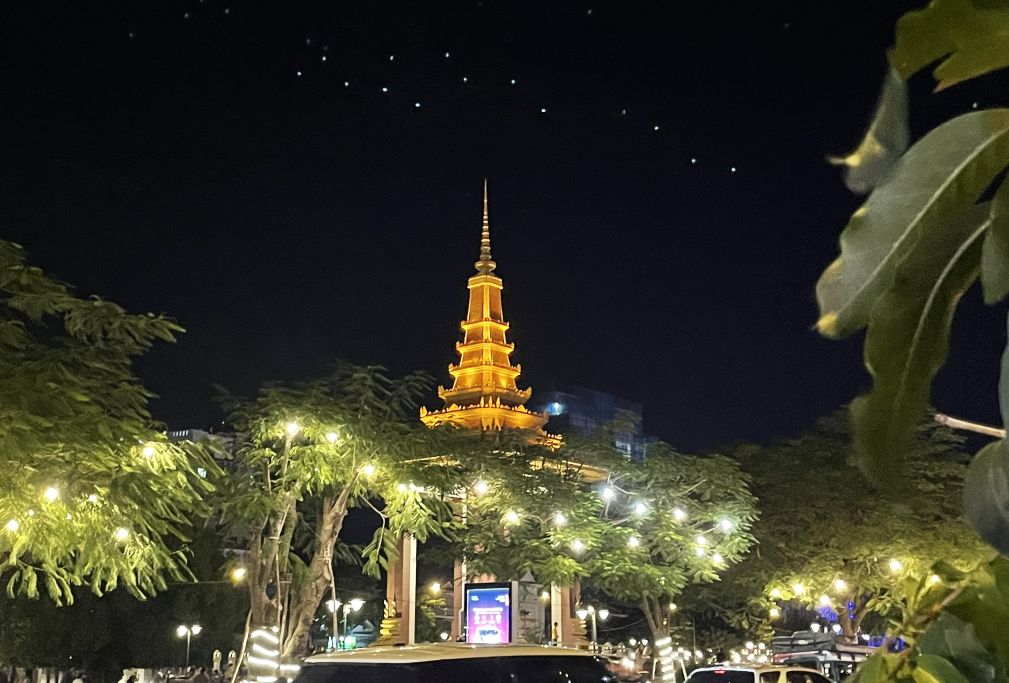 View of the Sihanouk Memorial Stupa from the Boulevard.