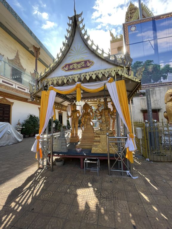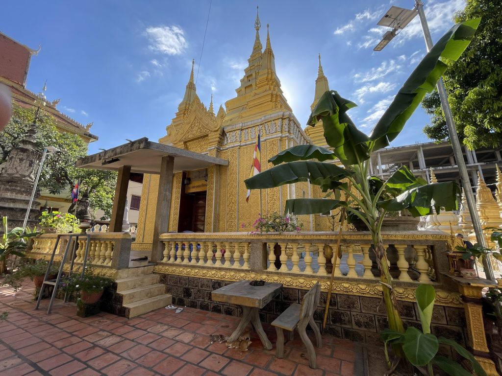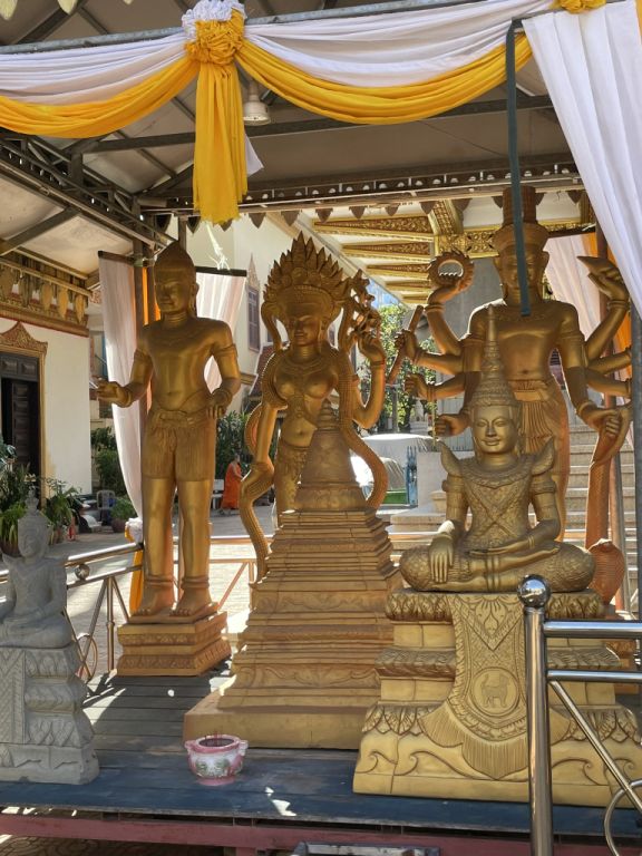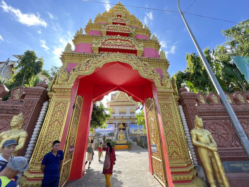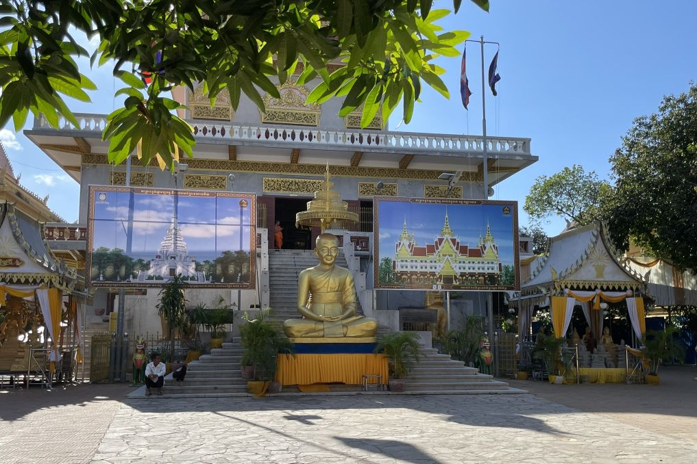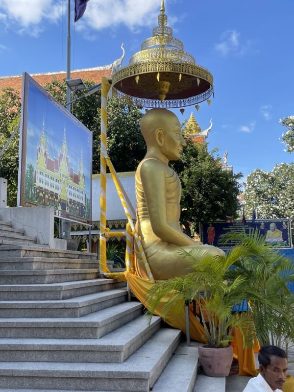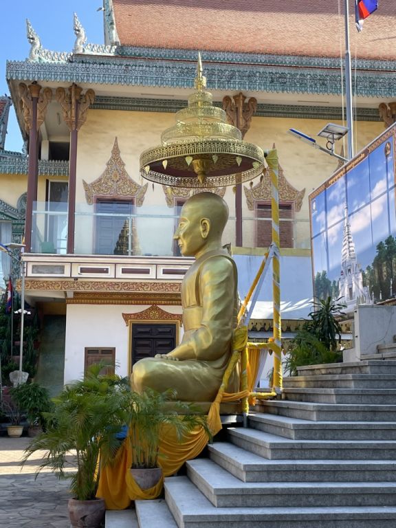 At the entrance is a large golden statue of the monk Samdech Huot Tat