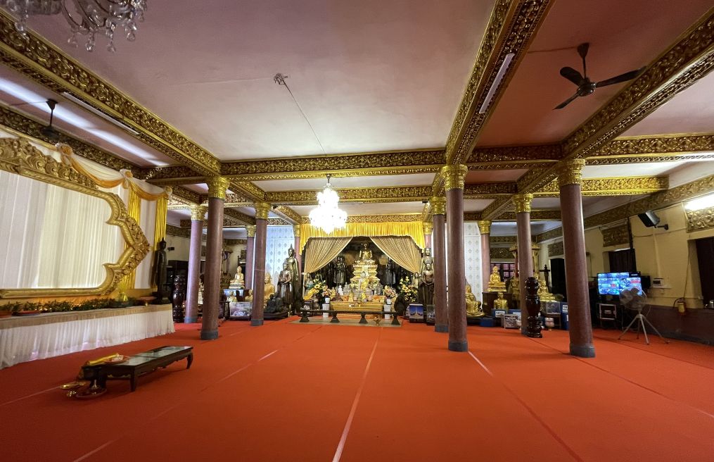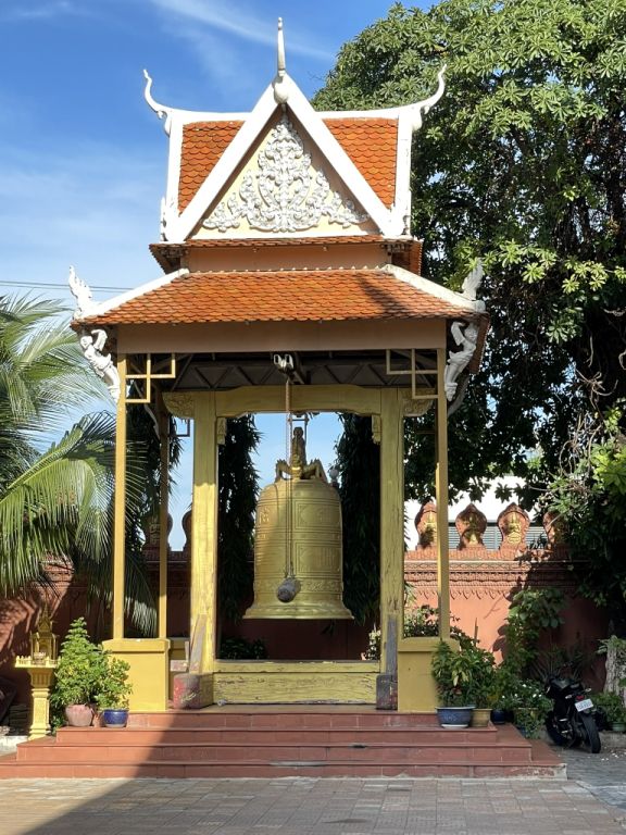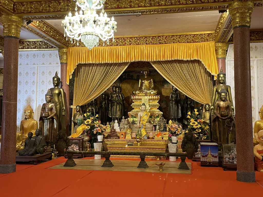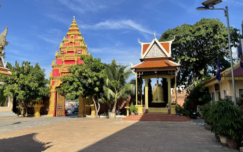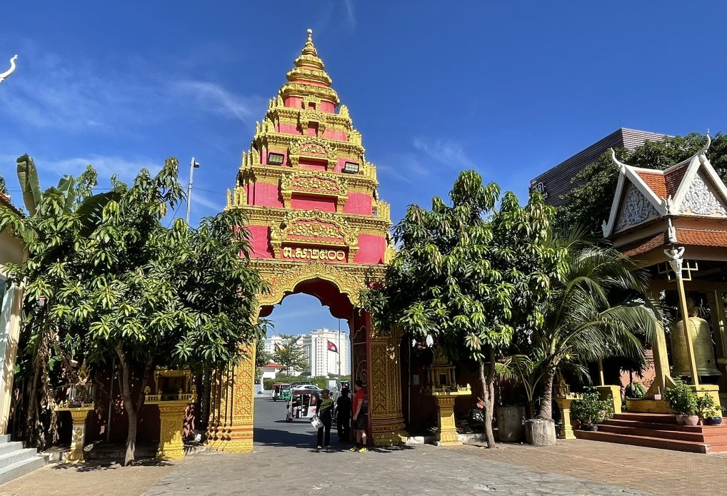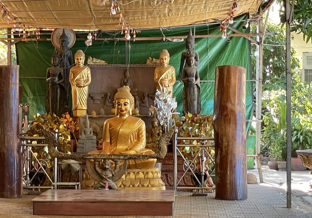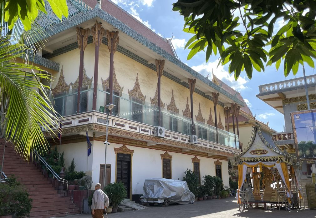 At the entrance is a large golden statue of the monk Samdech Huot Tat