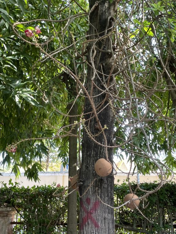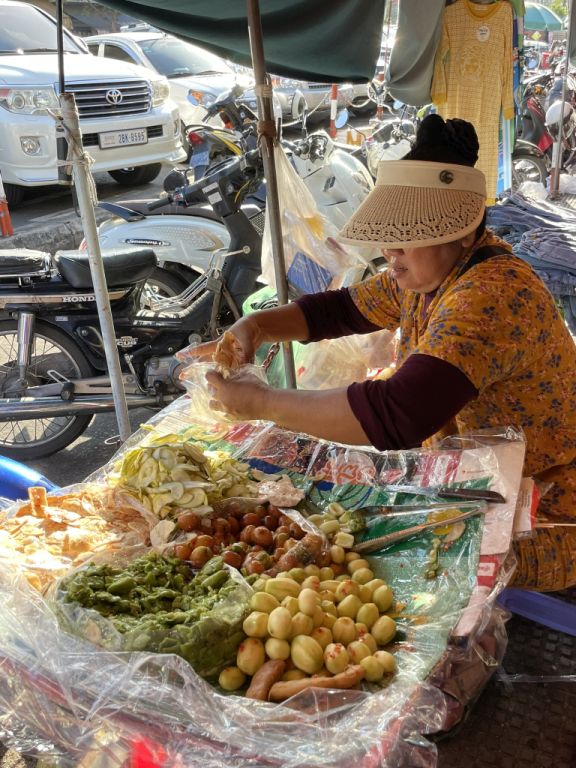 This is a fruit tree is called Santol. It has a thick inedible ring and a juicy tangy fresh cotton like texture. Cambodian consume it fresh or use it in savory dish.