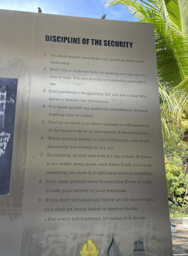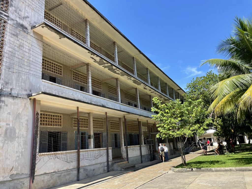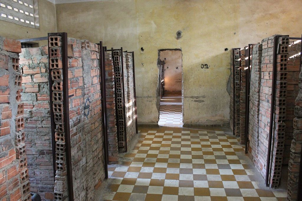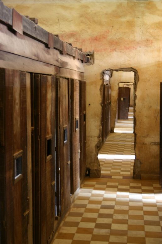 Tuol Sleng (hill of the Poisonous Trees) Genocide Museum retracing the Cambodian Genocide is located in a former high school which was then used as a Security Prison 21-(S-21) by the Khmer Rouge government under Pol Pot from 1975 to 1979s. It opened to the public as a museum and war memorial in 1980. Tuol Sleng was the most notorious of the 189 known interrogation centers in Cambodia, Between 14,000 and 17,000 prisoners were detained there, often in primitive brick cells built in former classrooms from 1976 to 1979. The Kmer Rouge established between 150 and 196 torture and execution centers and the secret police known as the Santebal (literally "keeper of peace") during their reign of terror.