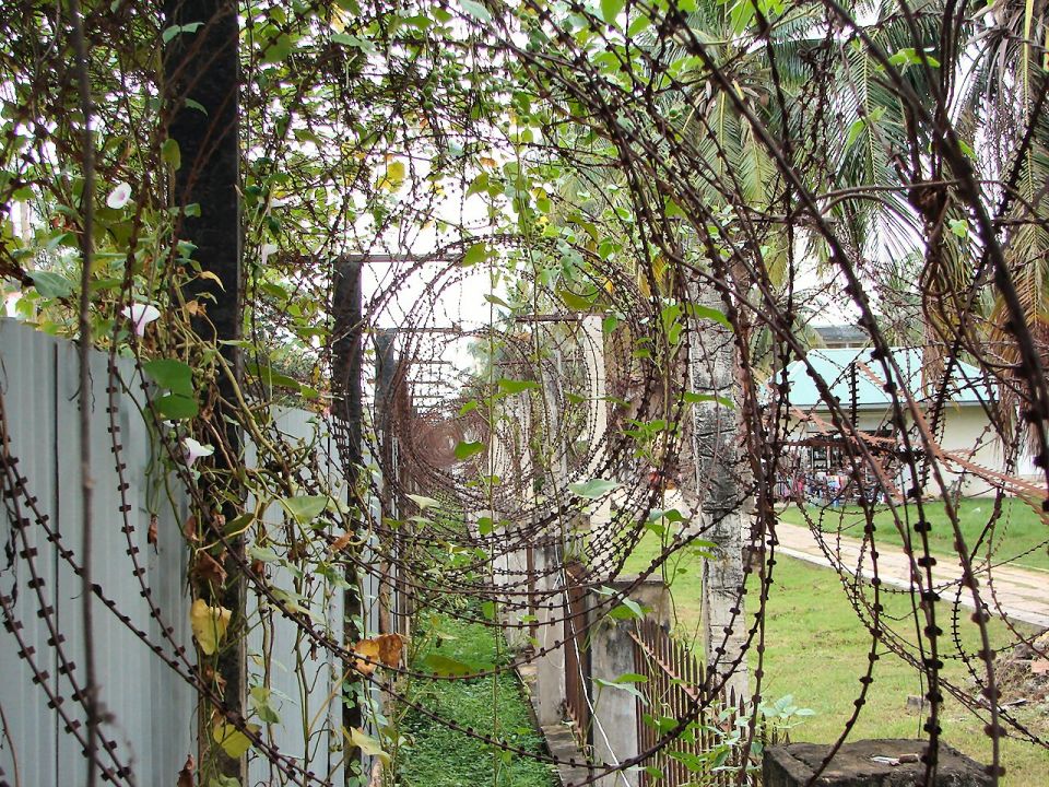 The buildings were enclosed in electrified barbed wire, the classrooms