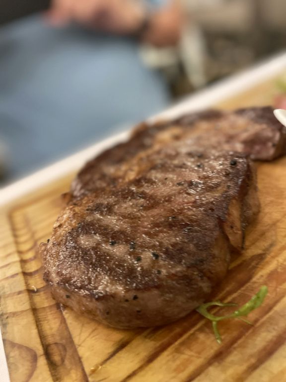 The steak was cooked at Hoa's liking and it was tasty.