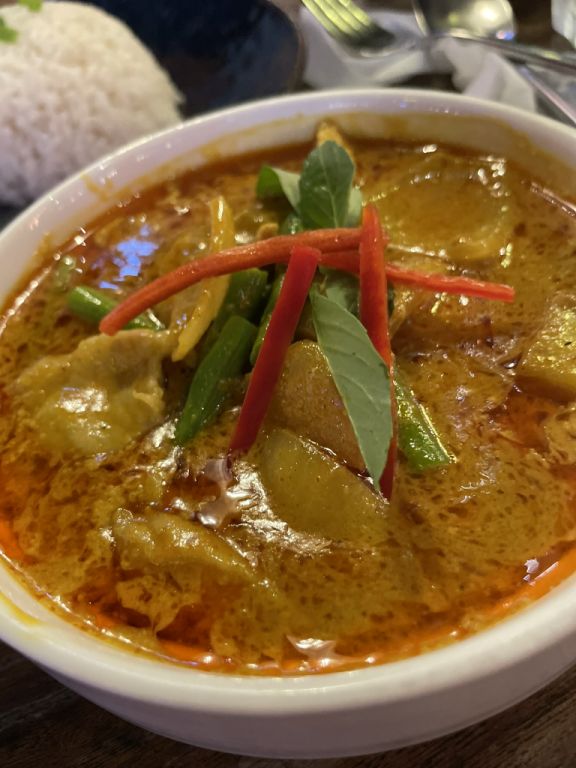 I ordered Amok which is the national dish in Cambodia. It is a fragrant and spicy coconut fish curry that is usually steamed in banana leaves and served with rice.