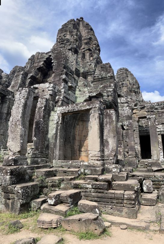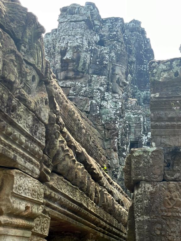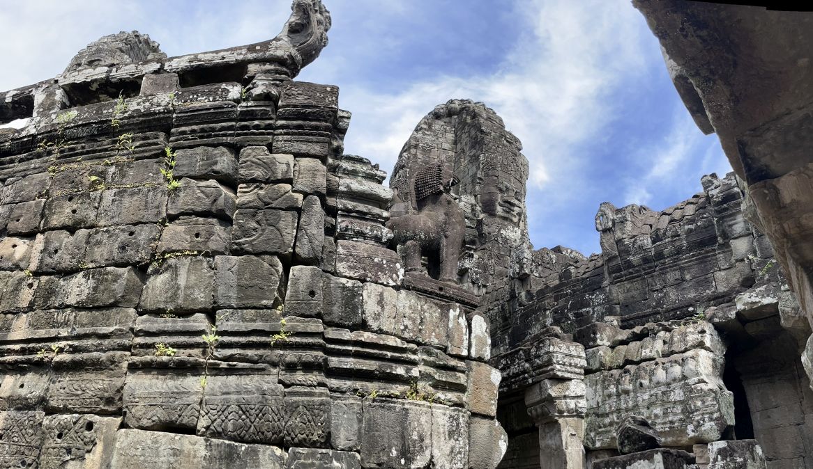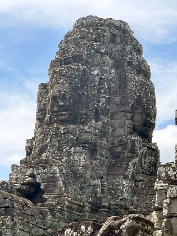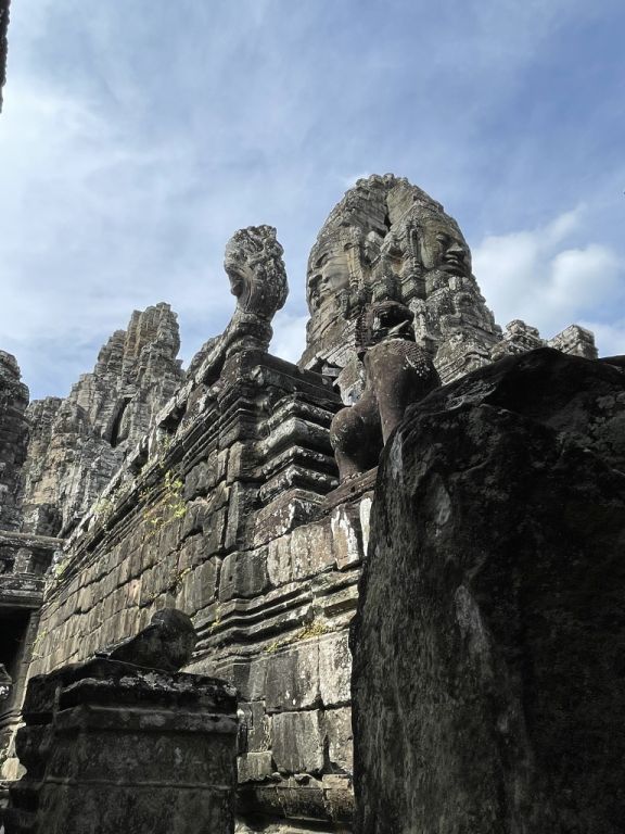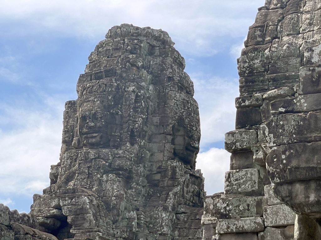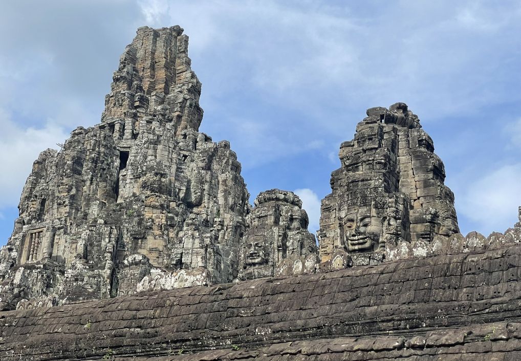 Together, these towers of smiling faces at various heights mimic the peaks of a mountain, reminding the visitor that the Bayon was intended to symbolize the center of the Buddhist universe, Mt. Meru