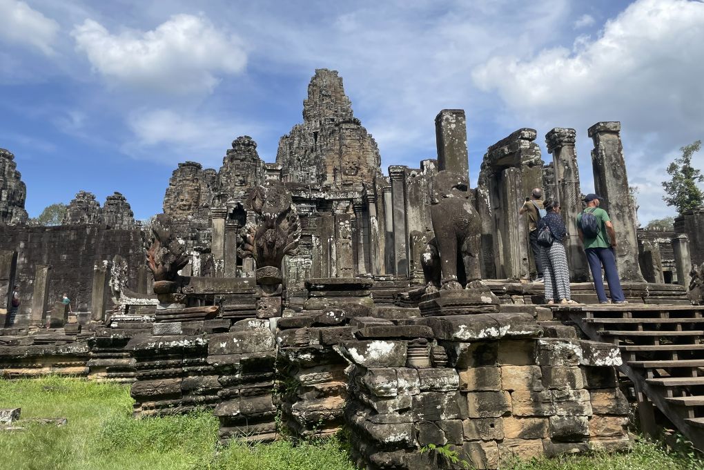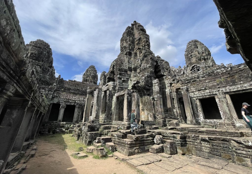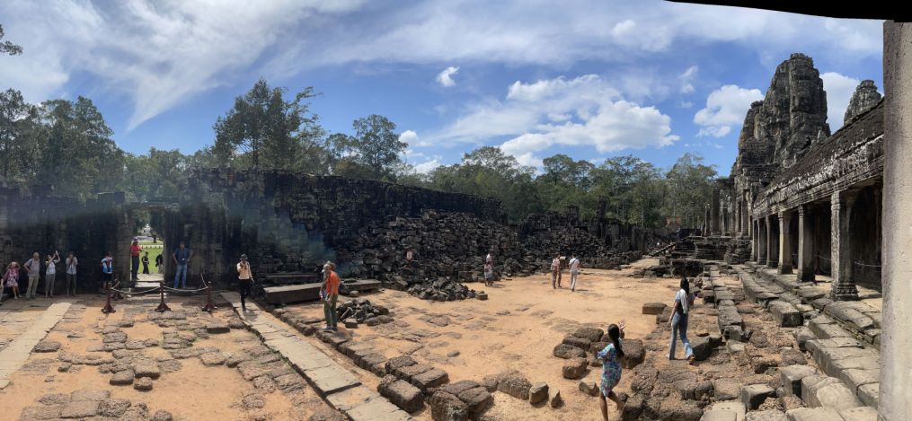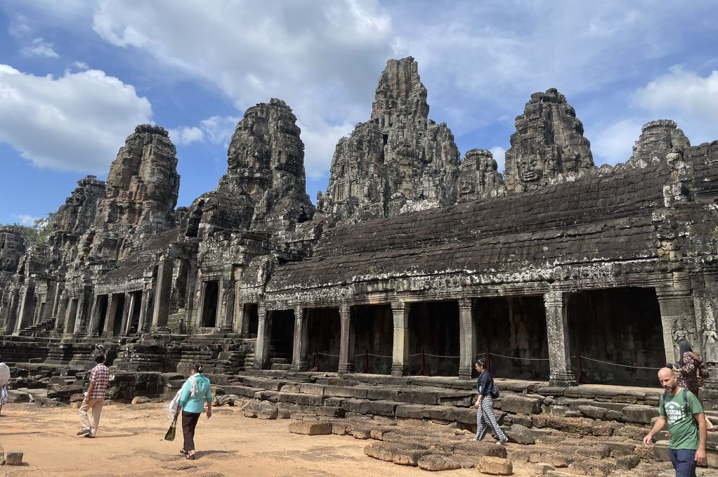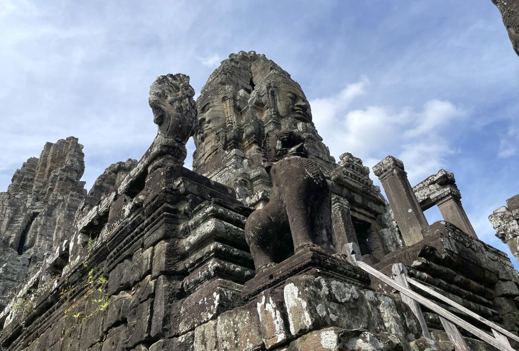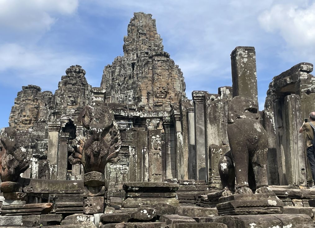 Together, these towers of smiling faces at various heights mimic the peaks of a mountain, reminding the visitor that the Bayon was intended to symbolize the center of the Buddhist universe, Mt. Meru
