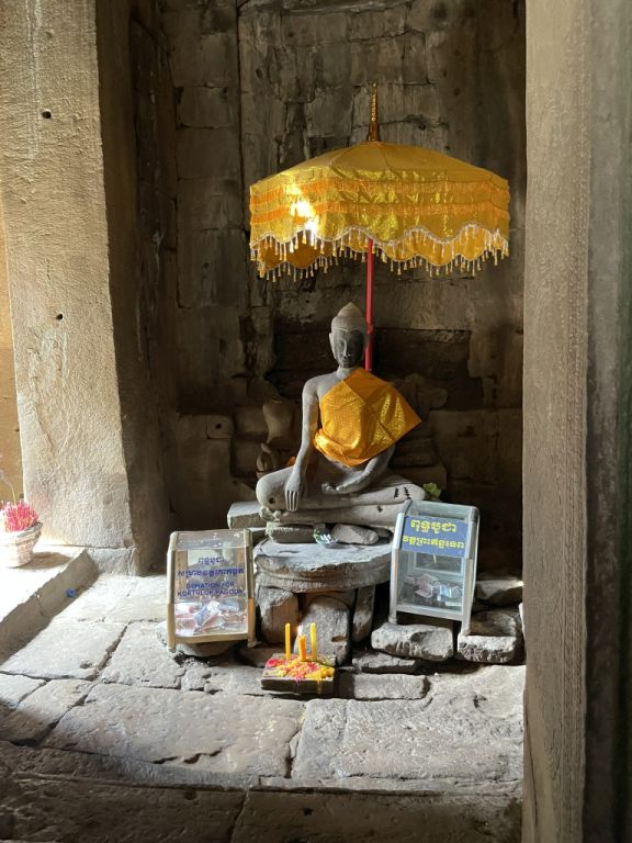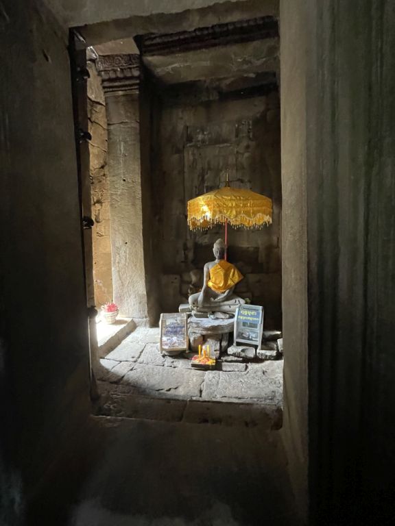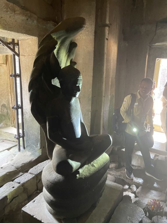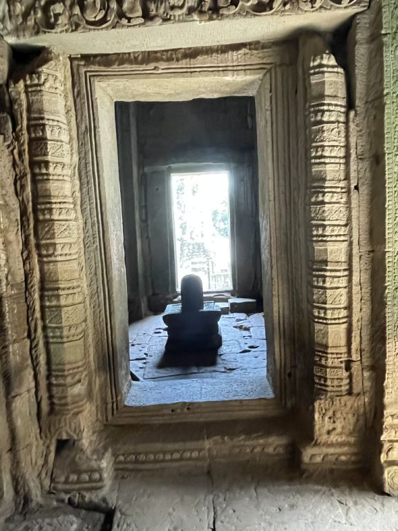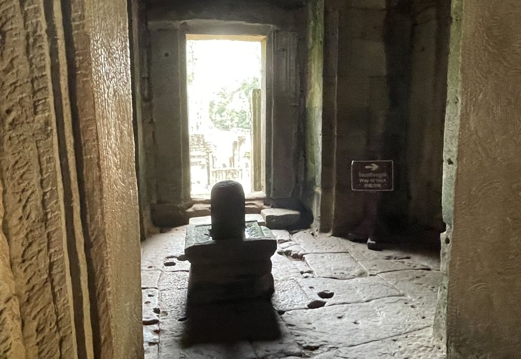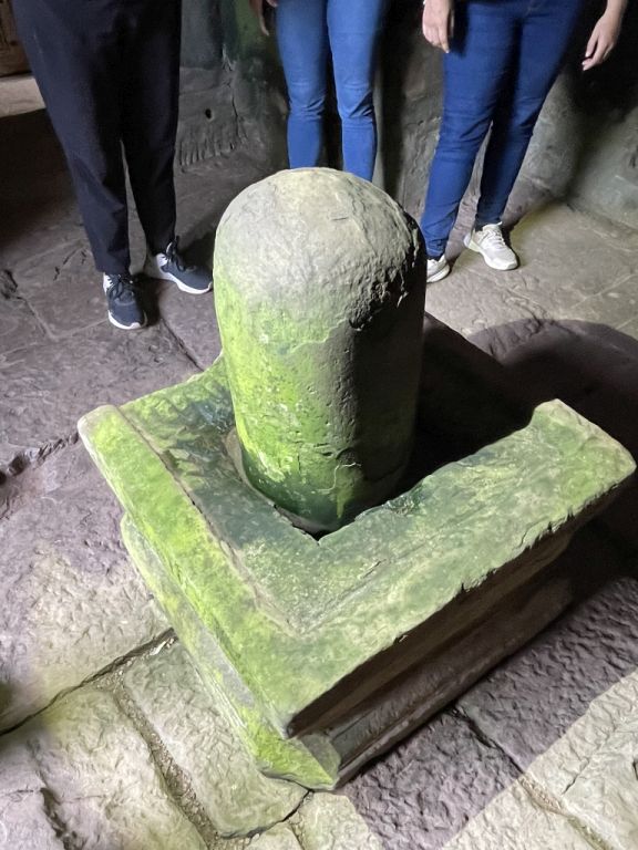 A linga is a symbol of the Hindu god Shiva, which was part of the temple’s transformation from Buddhist to Hindu.