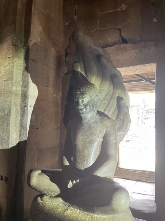 Statue of Buddha sitting on the Naga (serpent Muchalinda) who protected Buddha from the elements after his enlightenment.