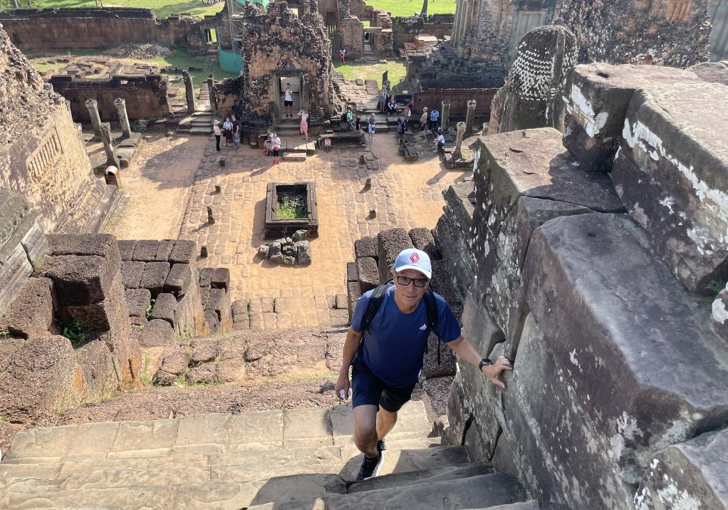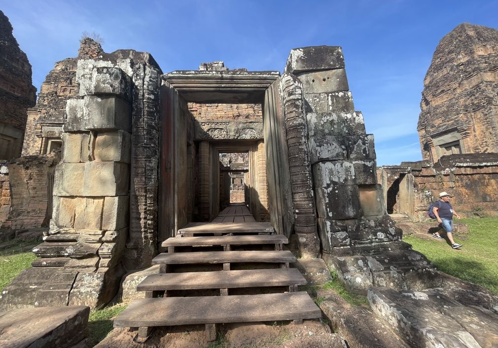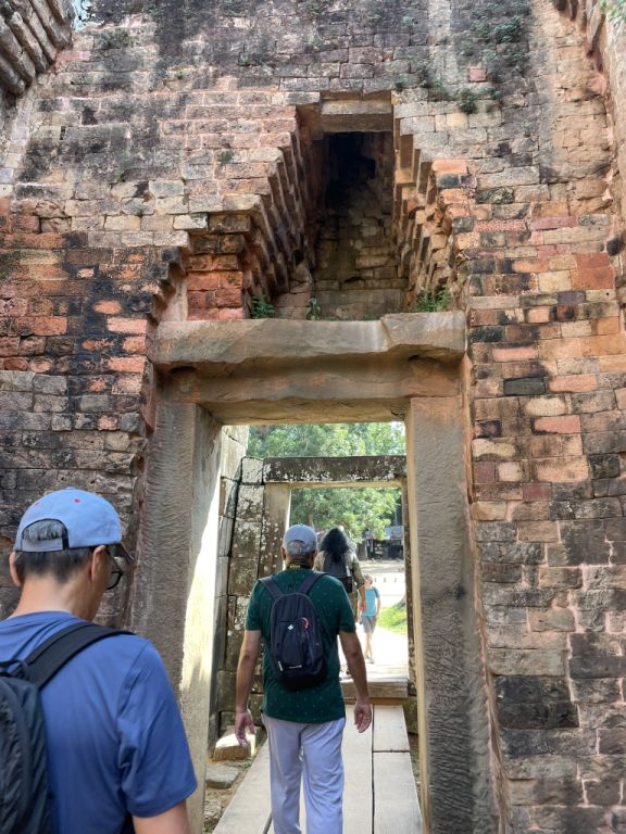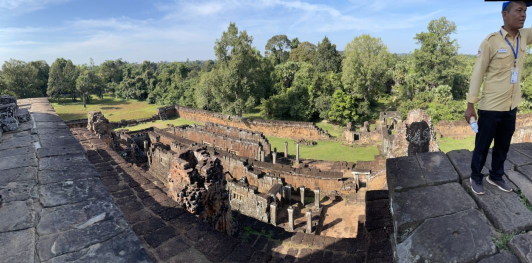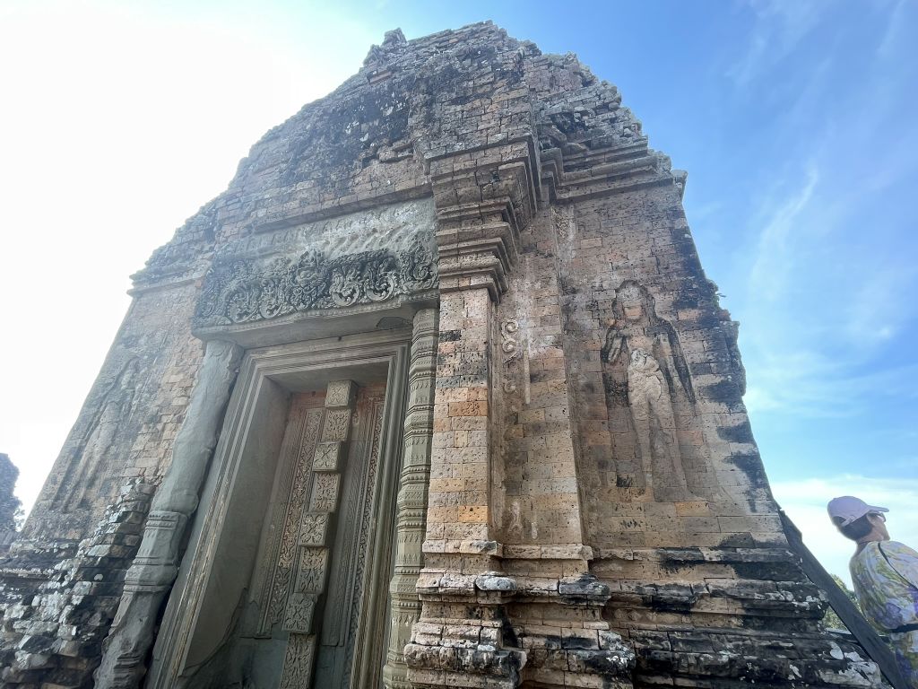 Entering the ground of the temple. Pre Rup Temple consists of three tiers, each adorned with ornate carvings and sculptures. Our tour guide is on the right with the yellow shirt.