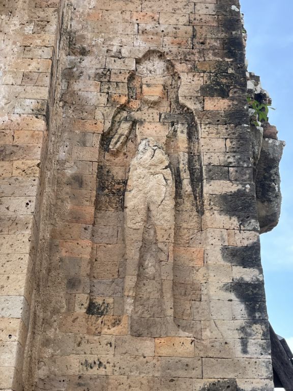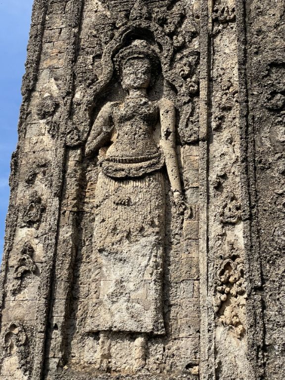Feminine figure in the niche are surrounded by flying Apsaras (celestial nymph).