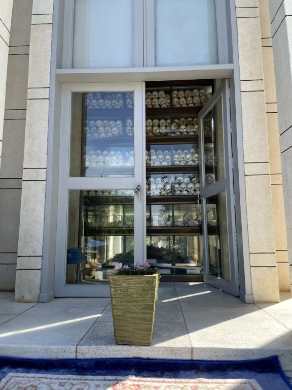 More than 8000 skulls, arranged by sex and age, are visible behind the clear