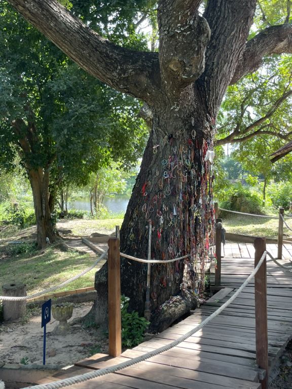 Executioners would smash babies’ heads against this tree before throwing them into an adjacent mass grave. This was often done right in front of the mothers. This was a politically strategy to prevent the children from growing up to take revenge against the Khmer Rouge. Today, this tree is covered with bracelets in remembrance of all of the children who were killed here.